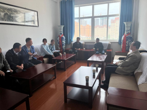 看望实习学生期间,何栋才与各实习单位的负责人进行了座谈,就学生的实习表现和进一步合作交流了意见。