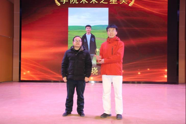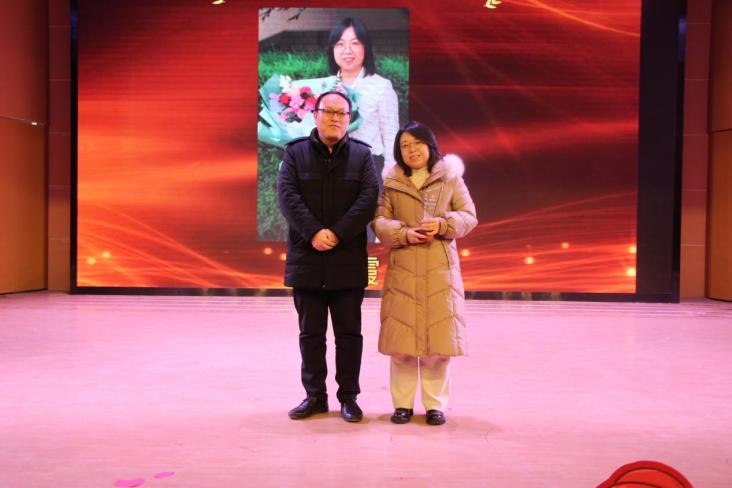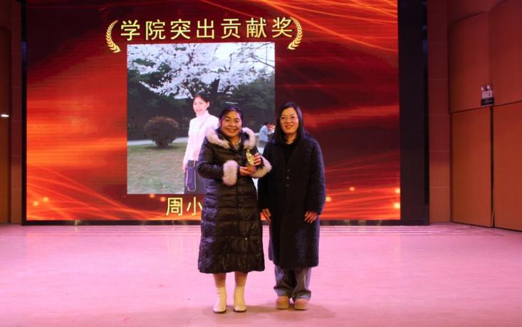 在颁奖环节,学院党政领导分别为获得学院“突出贡献奖”的周小平老师, 获得“教书育人奖”的王莉霞老师,获得李政道奖学金和学院“未来之星奖”的张晨晓同学颁奖。