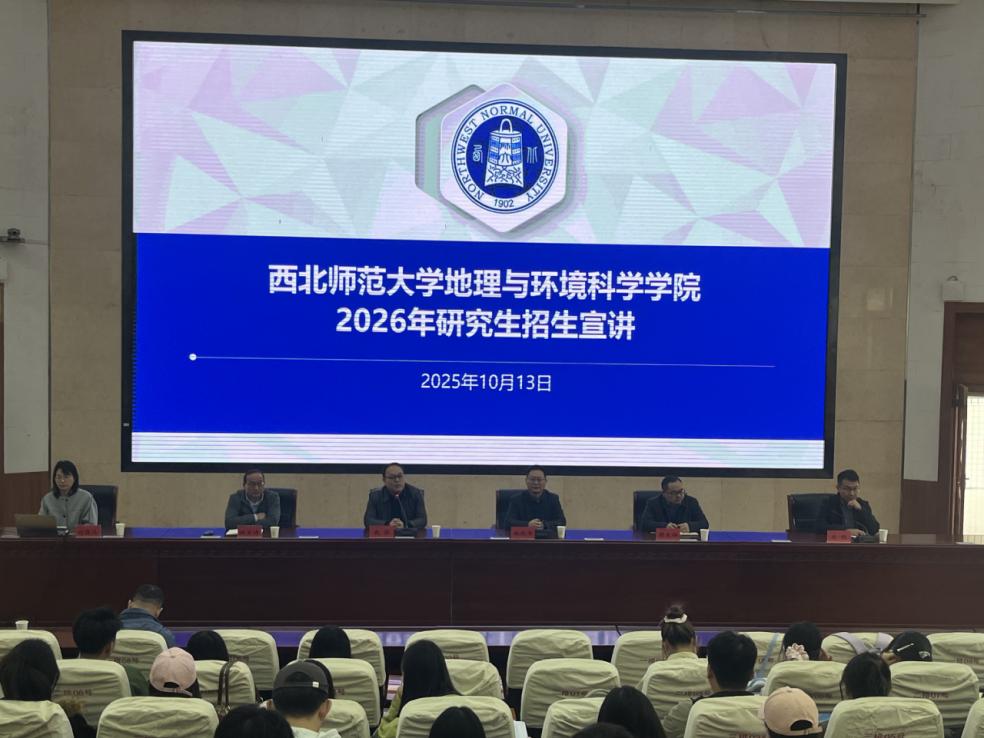2025年10月13日,西北师范大学地理与环境科学学院院长姚晓军教授带领党委副书记、行政副院长谢文涛等一行4人莅临十大买球官网,开展2026年硕士研究生招生专项宣讲活动。此次活动旨在深化两校在资源与环境科学、地理学等领域的学术合作,吸引优质生源报考西北师范大学相关学科,同时为十大买球官网师生提供精准的升学指导与政策解读。十大买球官网领导班子成员、各系主任及2026届毕业生代表共300余人,在2号报告厅参加了本次宣讲会。