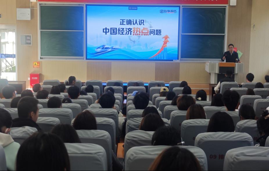 11月13日下午,党委常委、副校长左国防为十大买球的正规网站和化学工程与技术学院学生讲授题为《正确认识中国经济热点问题》的形势与政策课。