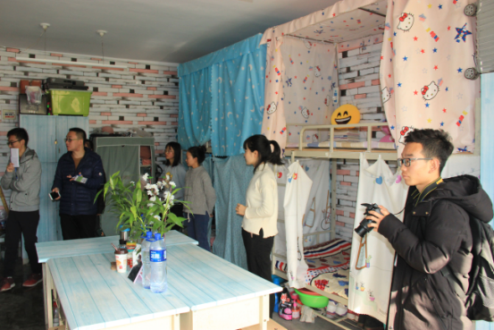 在辅导员张百乐的带领下,检查人员主要针对了床铺整洁,地面卫生,安全问题等情况进行了检查和综合评分,由外宣部成员对宿舍进行拍照。最后,辅导员在每一个宿舍强调了安全用电的重要性。