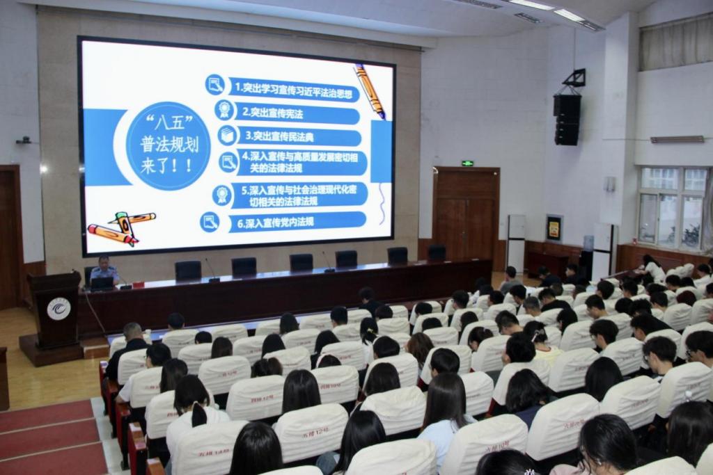 报告会上,董全子紧扣时代脉搏与学生实际,围绕“八五”普法精神、提升政治法治素养、维护意识形态安全、保障人身安全、塑造健全人格等五大核心议题展开深入讲解。他聚焦大学生日常学习生活中易遭遇的法律风险点,如“校园贷”陷阱、电信网络诈骗、浏览境外网站的潜在风险、网络行为的法律边界等,结合大量真实案例,进行了深入浅出的剖析。